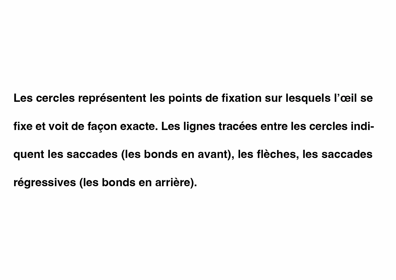 | Que l’on modifie la longueur des lignes, le corps aussi bien que la forme du caractère typographique, la longueur des saccades et leur fréquence changent |