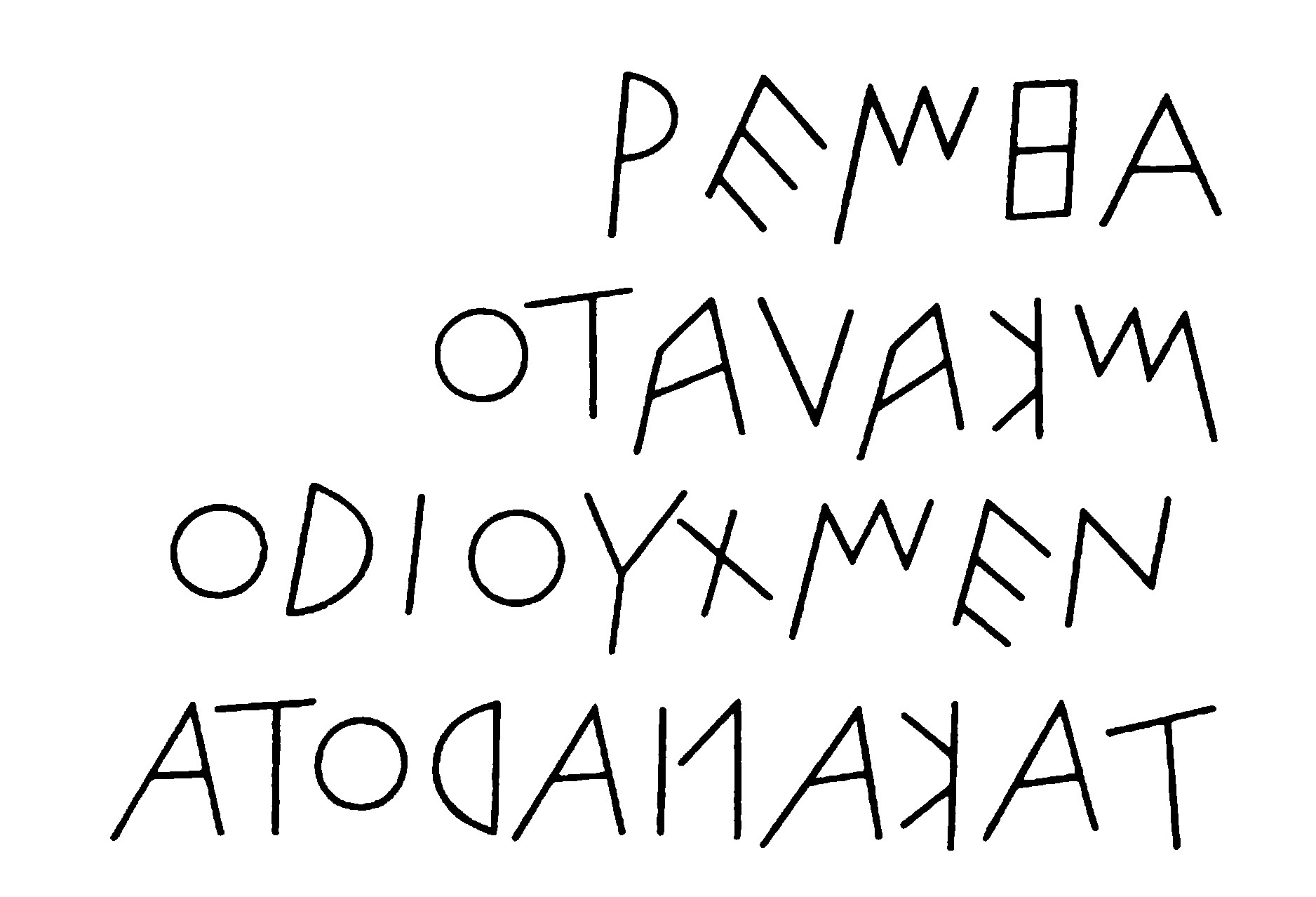 | Écriture boustrophédon: « comme le bœuf tourne en labourant le champ » |