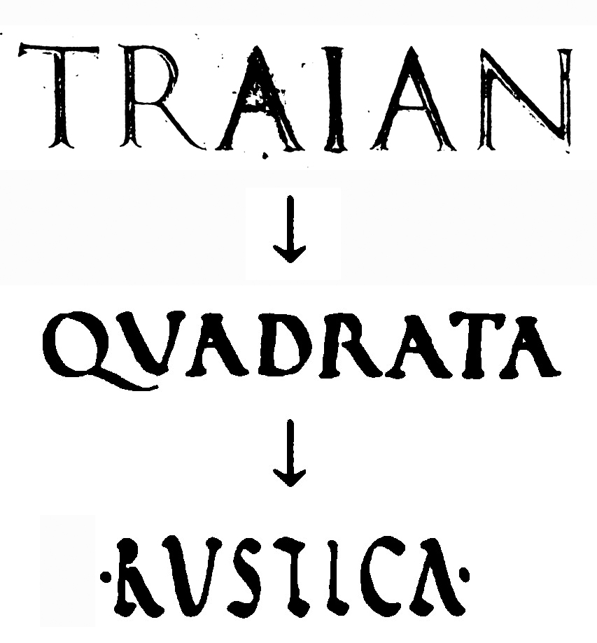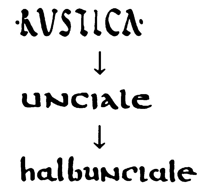 Les formes des lettres évoluent: on passe de lettres ciselées dans la pierre à des lettres tracées à la plume de roseau (calame). |
