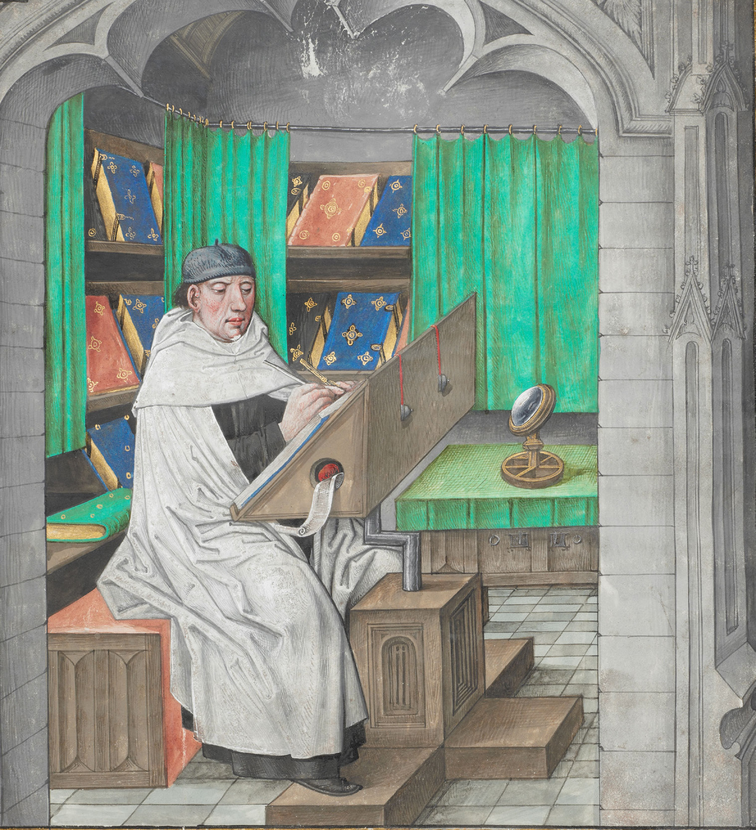 | Moine copiste dans un scriptorium |