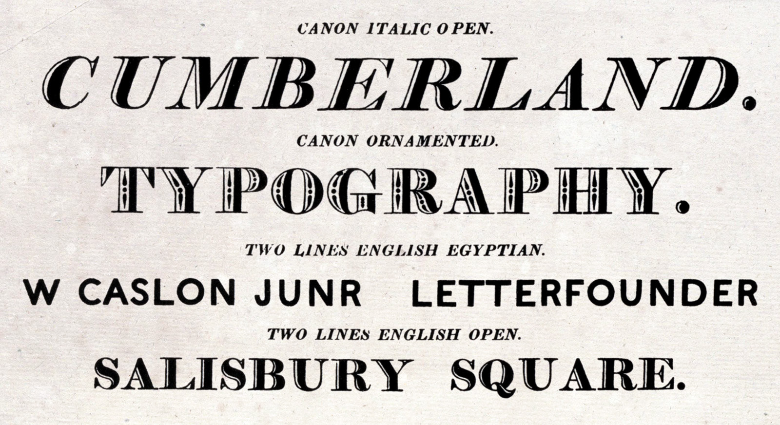 | Premier caractère caractères sans-sérif, fonderie Caslon de Salisbury Square à Londres |