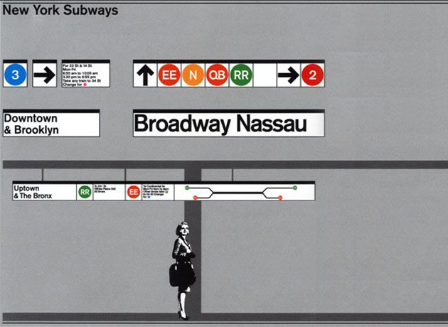 | Métro de New York avant la nouvelle signalétique |