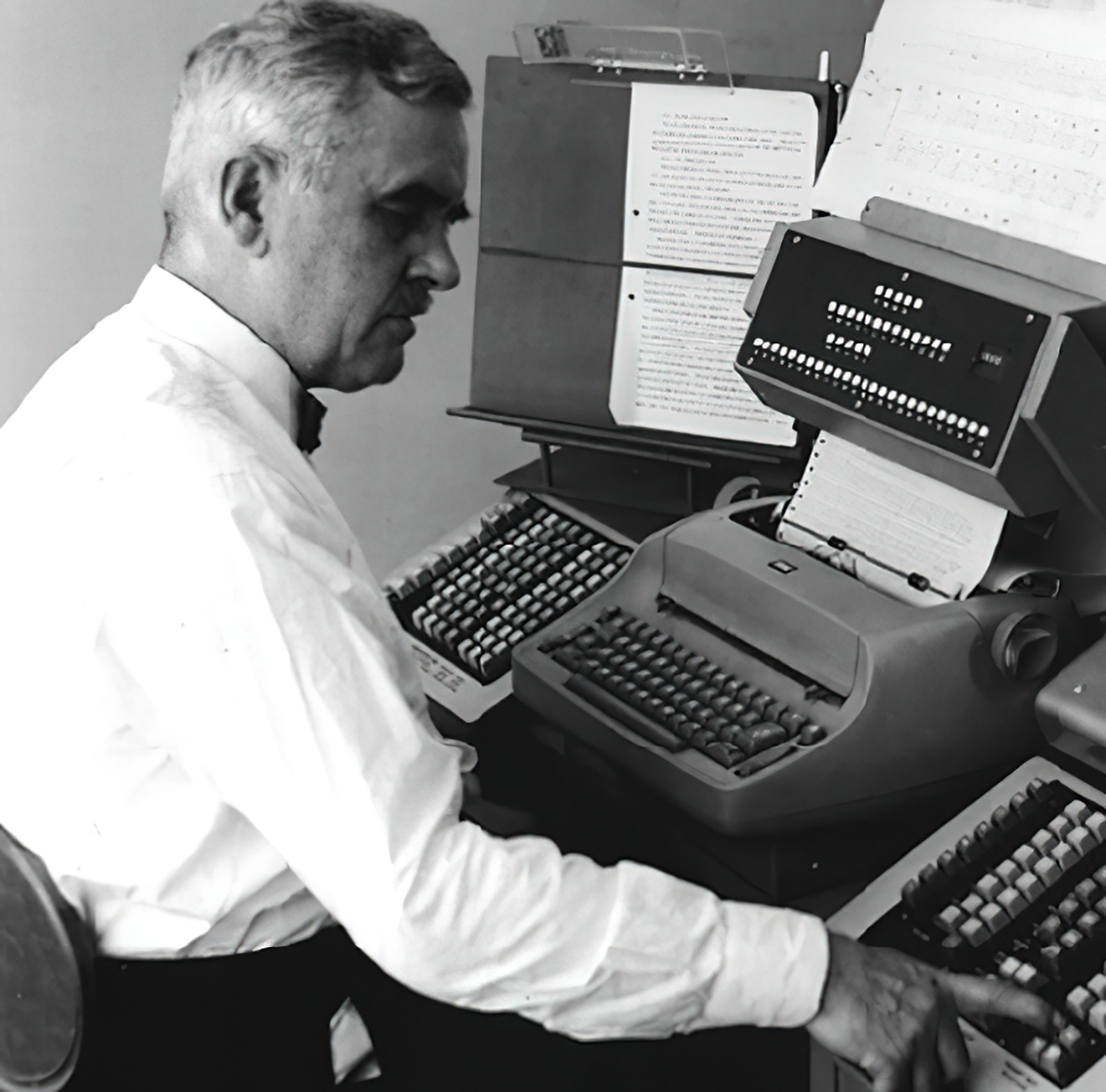 L’inventeur américain Ottmar Mergenthaler, parfois appelé « le second Gutenberg », se lasse des efforts nécessaires à la composition manuelle et cherche à mettre au point une méthode de composition mécanique. Il invente la machine Linotype qui permet de fondre des alliages métalliques pour créer des lignes de type en un seul bloc, permettant une impression rapide et efficace en utilisant un système de composition automatisé.