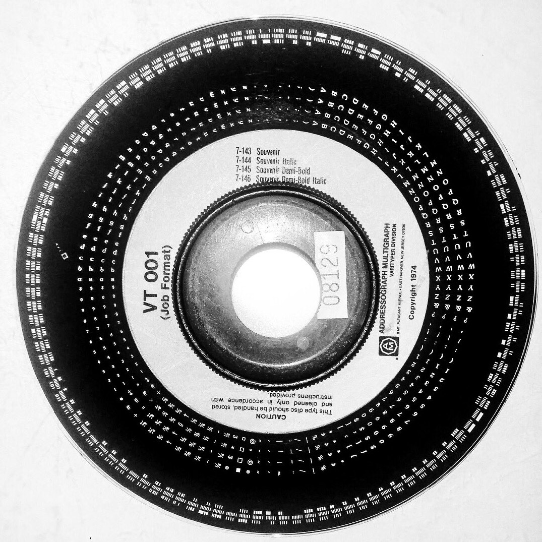 | Les caractères sont stockés sur des disques pour pouvoir être exposés sur des supports photographiques |