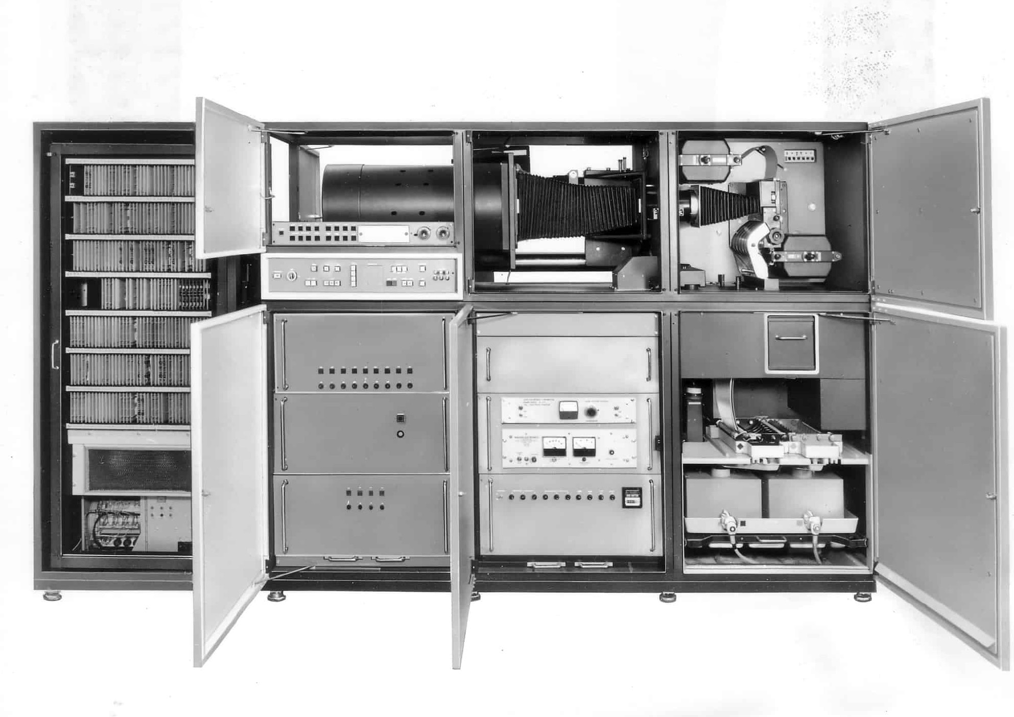 | Rudolf Hell invente la première machine à composer (Digiset) qui fonctionne en répartissant les points sombres d’une forme sur une grille préexistante |