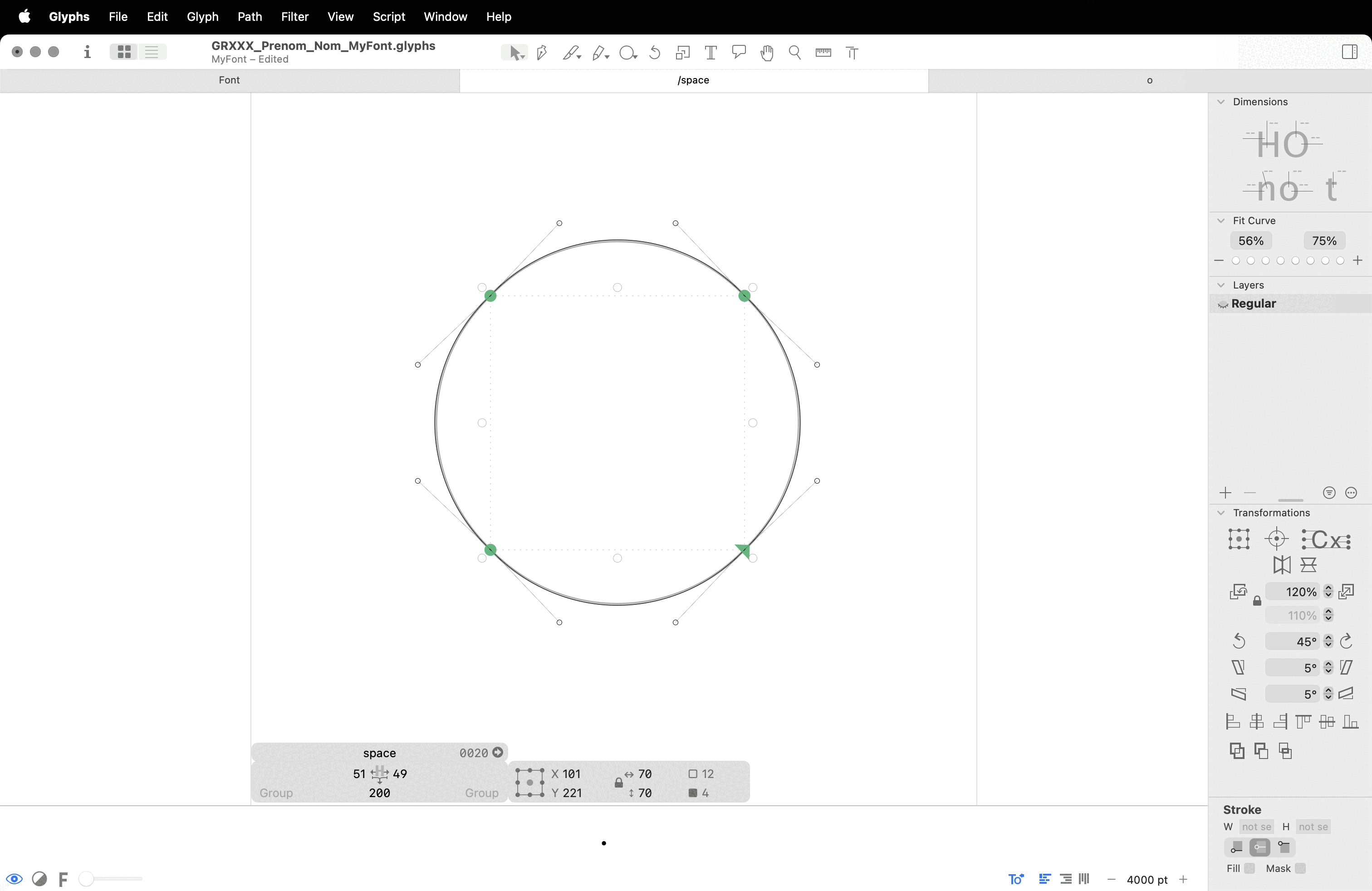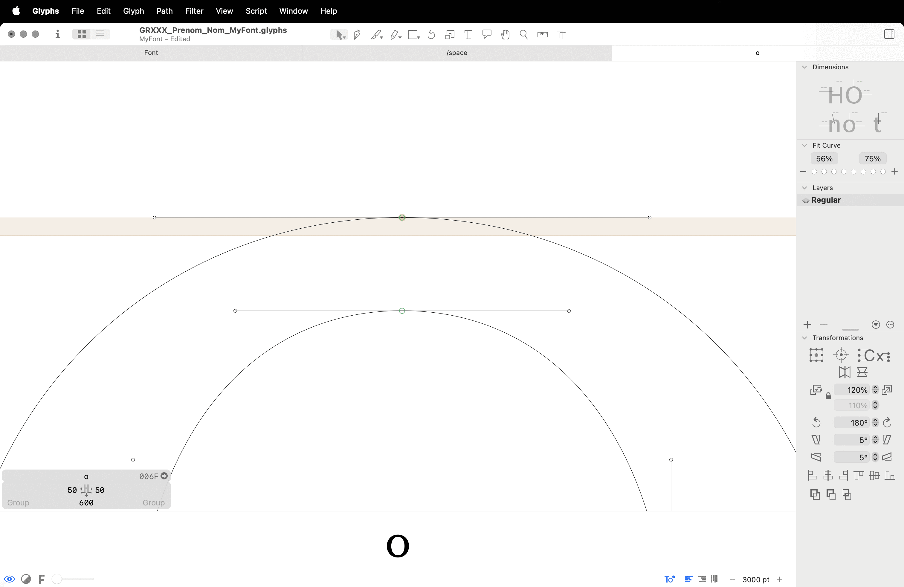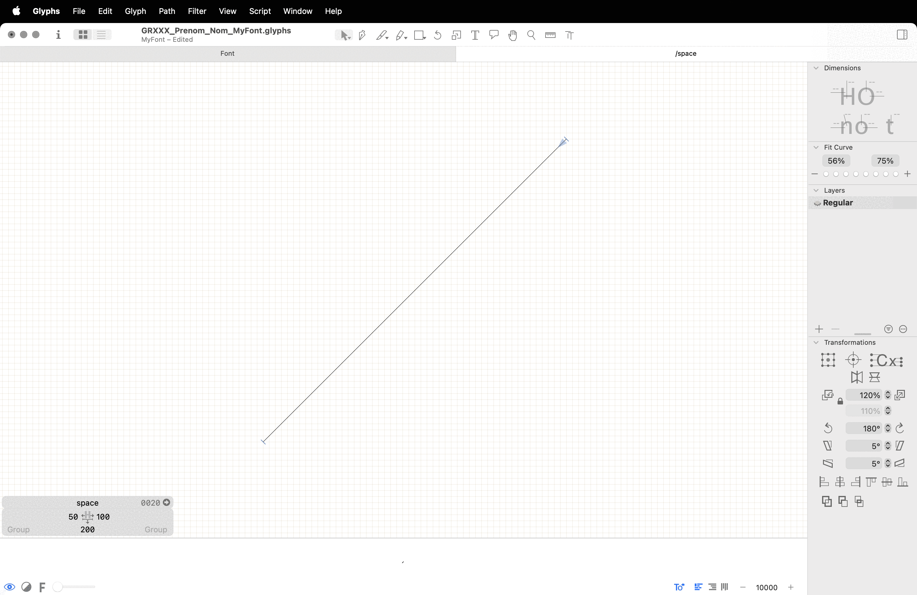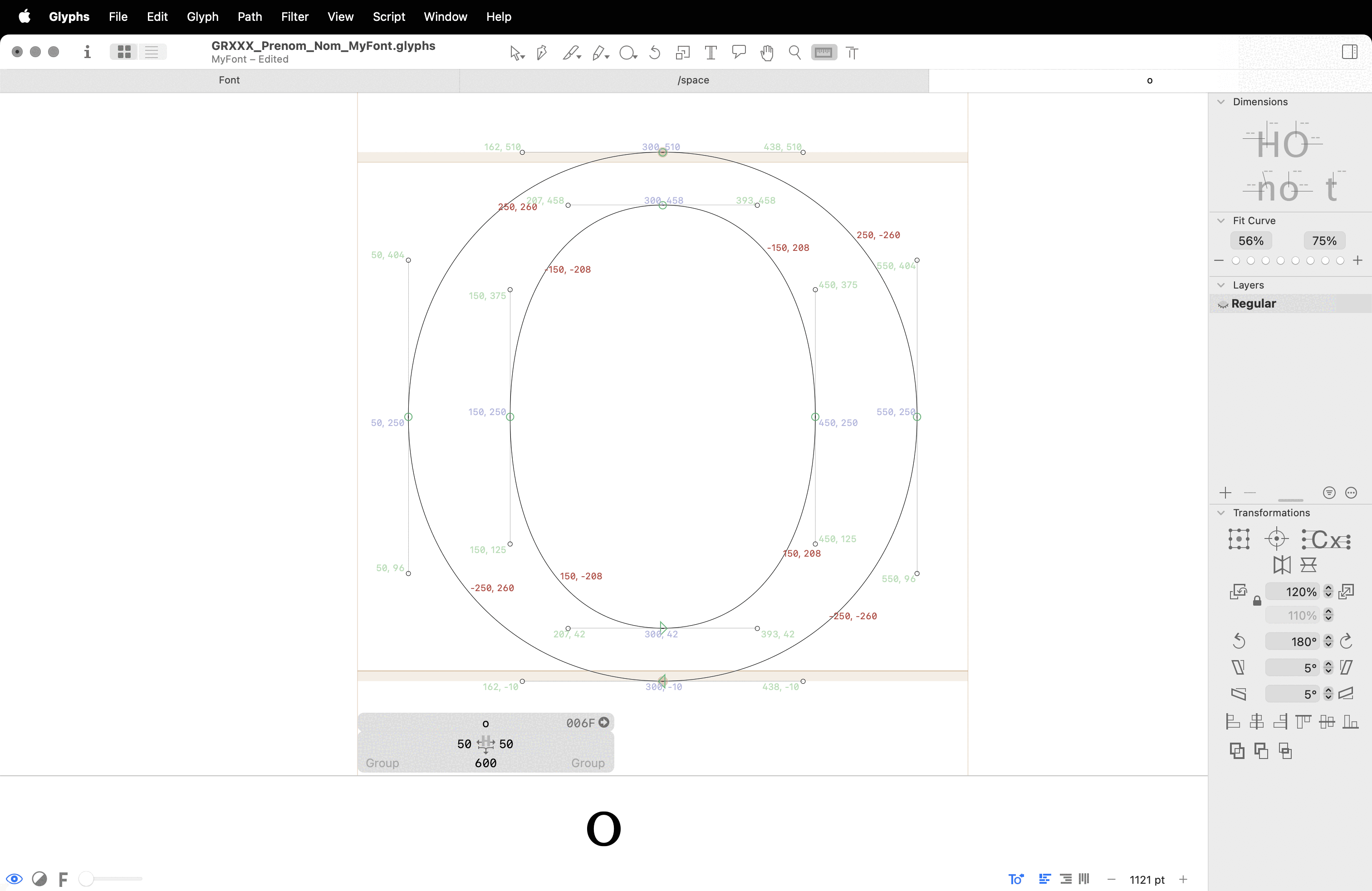 â Les mesures de compensation sont inscrites dans le fichier Glyphs (Fichier > Informations de la police > Master > Mesures)