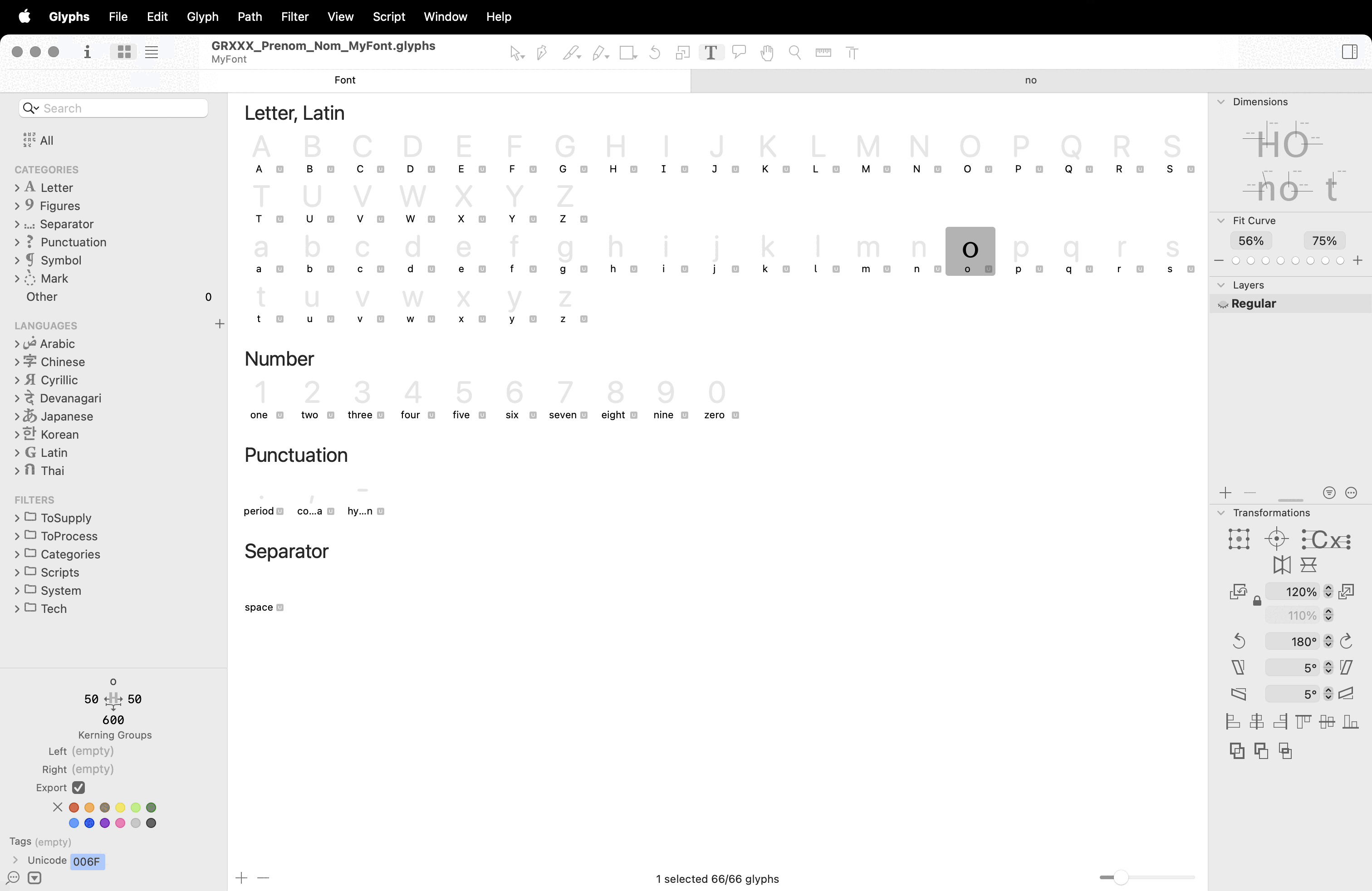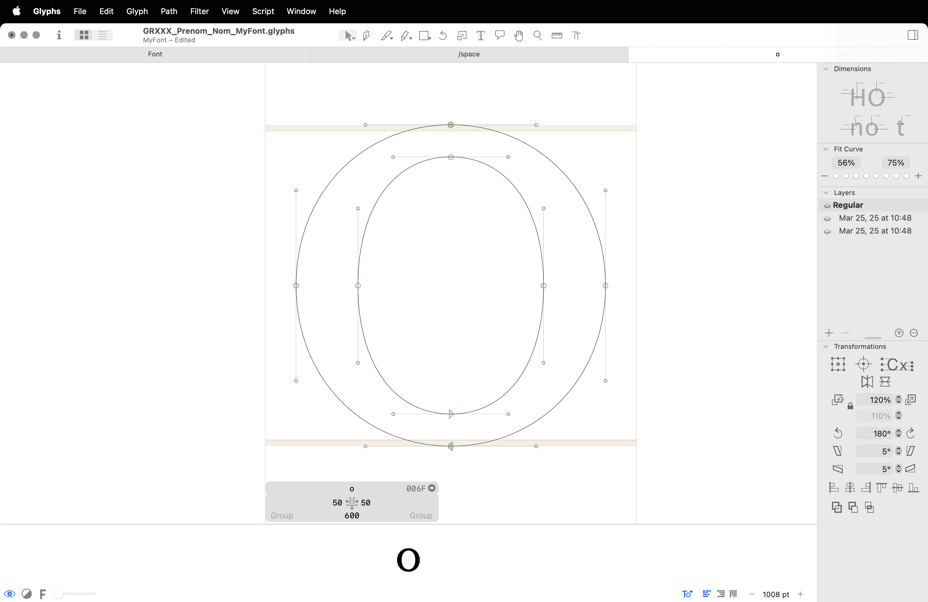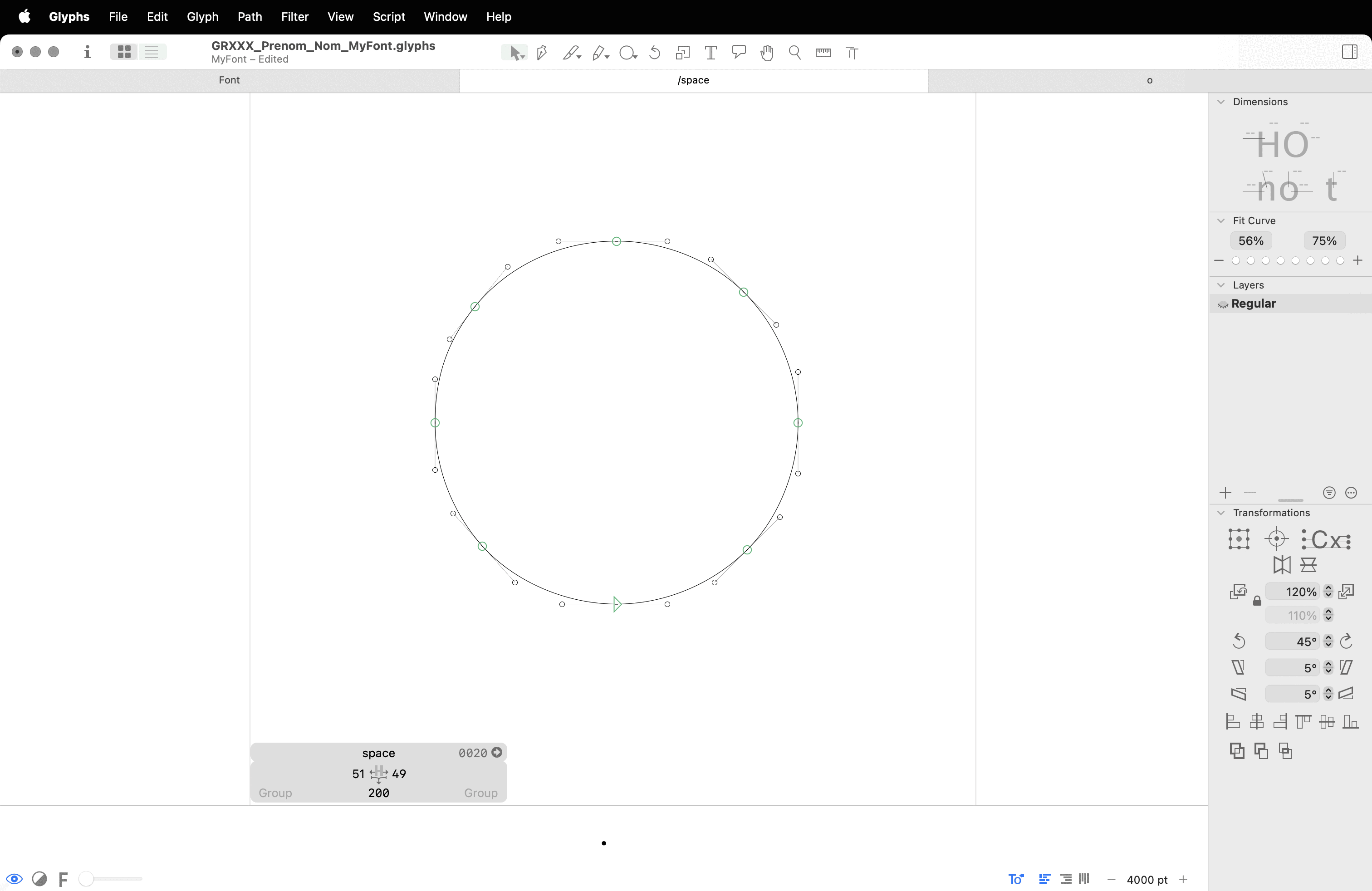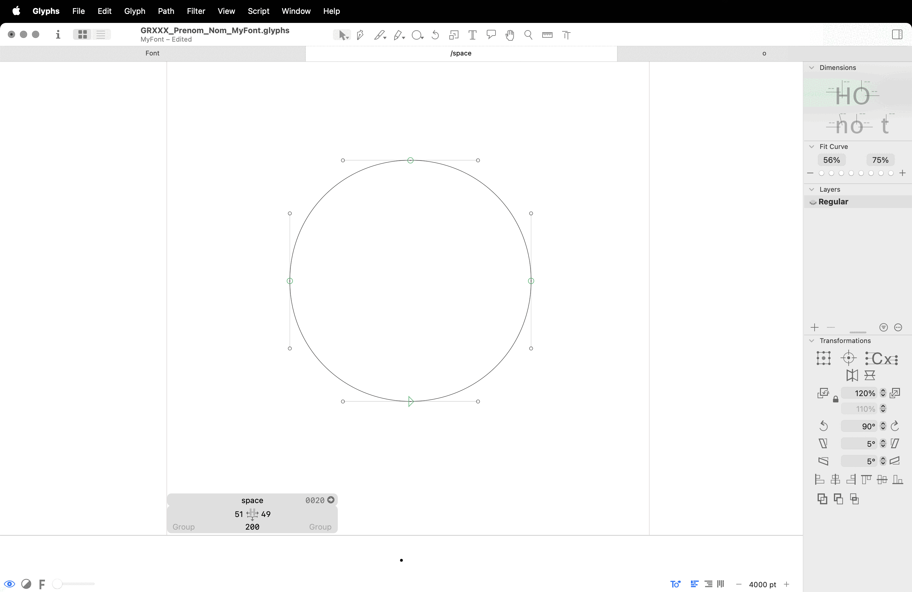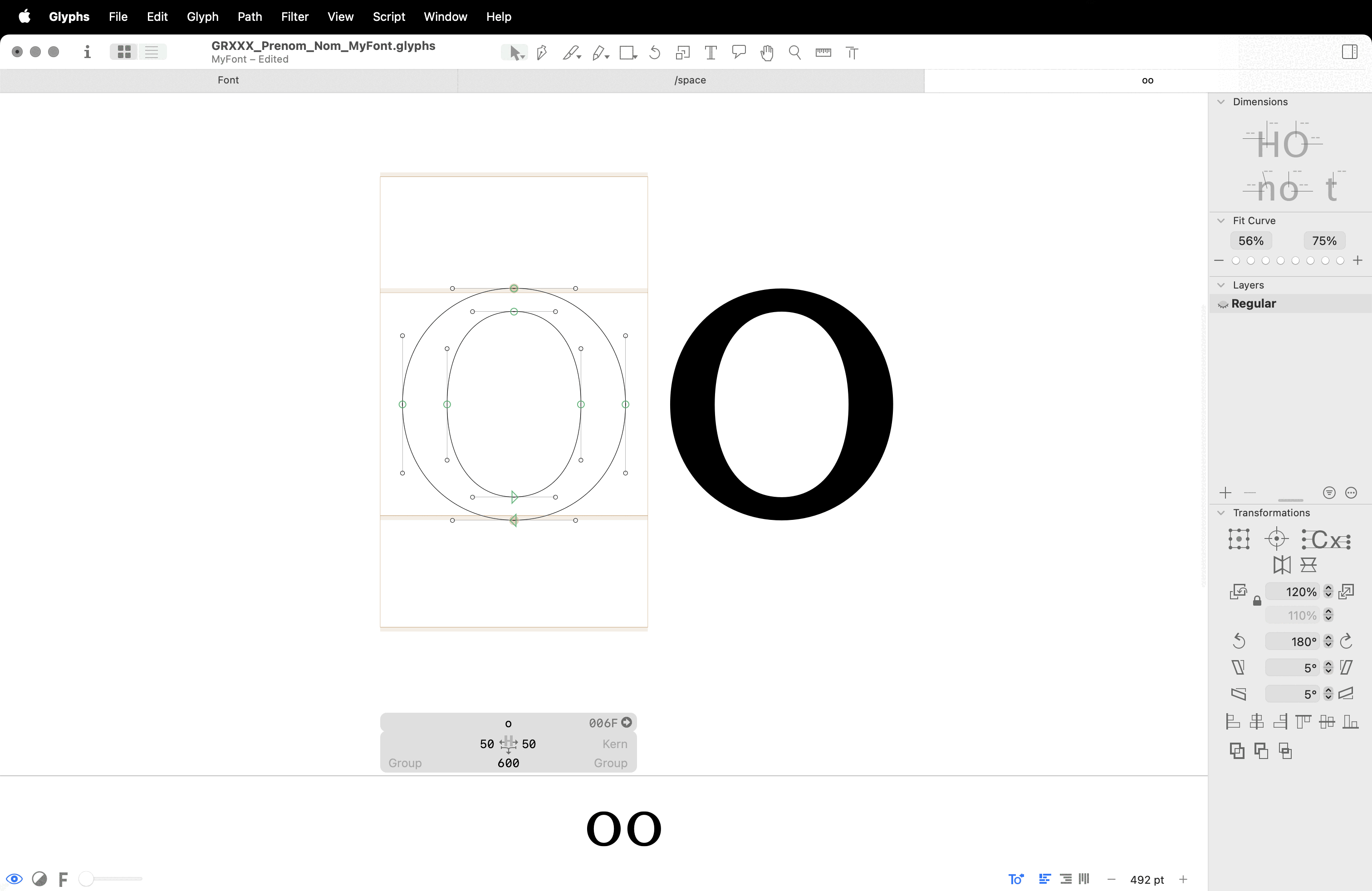 â Les mesures de compensation sont inscrites dans le fichier Glyphs (Fichier > Informations de la police > Master > Mesures)