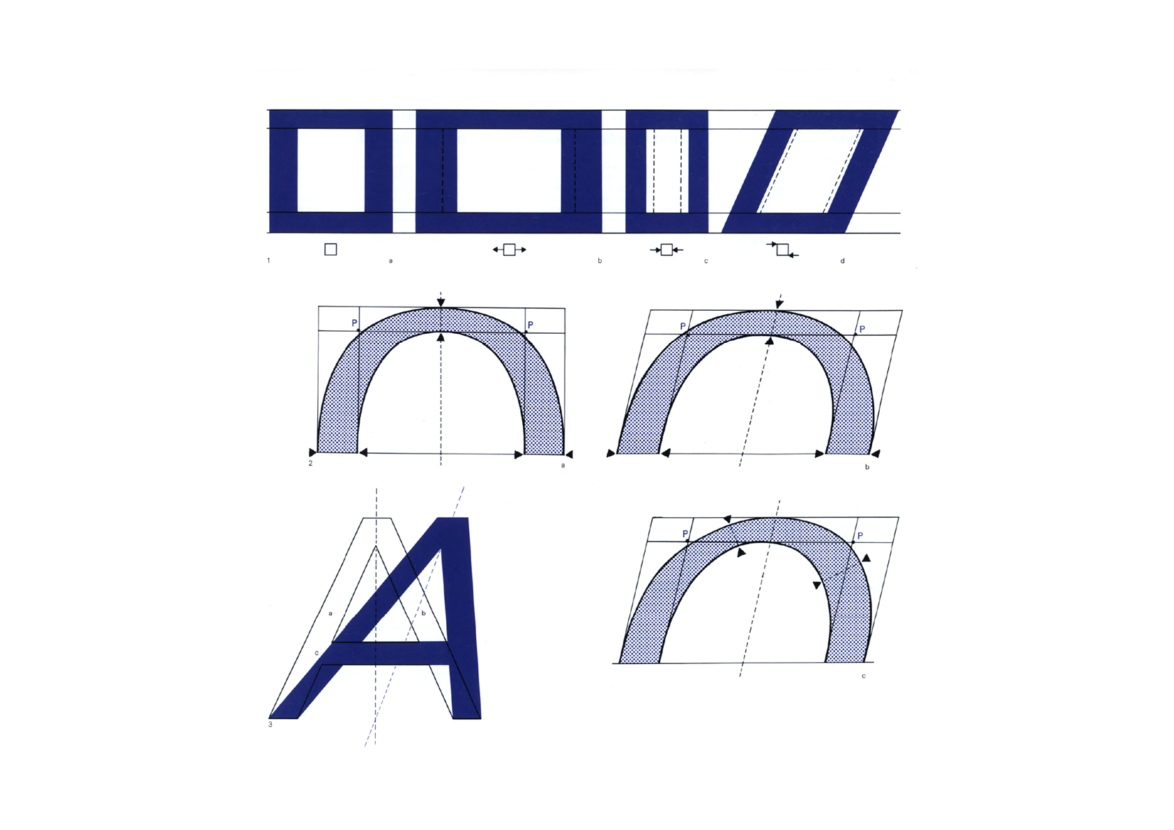 â La compensation est cohĂ©rente dans toutes les lettres en haut et en bas, selon les principes dâoptique (carrĂ©, rond, triangle)